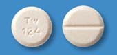 slightly pink tablet with split line, diameter 6.4mm, thickness 2.4mm