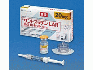 部份中文醋酸奥曲肽微球处方资料(仅供参考) 商品名:Sandostatin LAR kit 英文名:Octreotide Acetate 中文名:醋酸奥曲肽微球注射剂 生产商:诺华制药 サンドスタチンLAR筋注用キット10mg/サンドスタチンLAR筋注用キット20mg/サンドスタチンLAR筋注用キット30mg 药用分类名称 持久性生长激素模拟微球型持续释放制剂 批准日期:2014年6月 商標名 Sandostatin LAR kit for i.m. injection 構造式 一般名 オクトレオチド酢酸塩(Octreotide Acetate) 化学名 (−)-D-Phenylalanyl-L-cysteinyl-L-phenylalanyl-D-tryptophyl-L-lysyl-L-threonyl-N-[(1R,2R)-2-hydroxy-1-(hydroxymethyl)propyl]-L-cysteinamide cyclic(2→7)disulfide diacetate 分子式 C49H66N10O10S2・2CH3COOH 分子量 1139.34 性状 它是白色到淡黄色的白色粉末。 极易溶于水、甲醇、醋酸(100)、乙醇(95)或1-丁醇,不易溶于乙酰乙酸酯,几乎不溶于二乙醚。 本产品的水溶液(1至100)的pH值为5.0至7.0。 是吸湿性。 药效药理 1. 降低VIP生产肿瘤患者的血液VIP浓度。 2. 在类胡萝卜素综合征患者中,八达通降低5-HIAA尿排泄量,这是血清素的主要代谢物。 3. 八达通降低胃蛋白生产肿瘤患者的血液胃蛋白浓度。 4. 抑制脑垂体瘤细胞(在vivo18),体外19)从脑垂体瘤细胞释放。 适应症 1. 改善与以下疾病相关的症状 胃肠道激素生产肿瘤(VIP生产肿瘤、类胡萝卜素肿瘤、胃蛋白生产肿瘤,显示类胡萝卜素综合征的特征) 2.胃肠道神经内分泌肿瘤 3. 改善以下疾病的生长激素、生长激素-C分泌过量和症状 患有特质性巨质症和脑垂体巨发(如果手术治疗或其他药物治疗效果不足或难以实施) 用法与用量 1. 胃肠道激素生产肿瘤 通常,成人每4周注射20mg,注射到臀部肌肉中。之后,根据症状施用10mg,每4周施用20mg或30mg。然而,由于药物浓度在初始给药后两周内未达到足够的浓度,因此与在给药前施用的相同剂量的八达乙酸盐注射溶液结合使用。 2. 胃肠道神经内分泌肿瘤 通常,成人每4周注射30mg,注射到臀部肌肉。另外,根据患者的状态适当减肥。 3. 脑垂体巨病和脑垂体巨人症 通常,成人每4周注射20mg,注射到臀部肌肉中。然后10mg根据条件,但每4周施用20mg或30mg,只有当30mg给药的效果不足时,才能增加到40mg。 包装 LAR肌肉注射套件 10mg;1小瓶,2mL(注射器)(1个小瓶适配器附件) 20mg;1小瓶,2mL(注射器)(1个小瓶适配器附件) 30mg;1小瓶,2mL(注射器)(1个小瓶适配器附件) 制造和销售来源 诺华制药 注:以上中文处方资料不够完整,使用者以原处方资料为准。 完整说明附件: http://www.info.pmda.go.jp/go/pack/2499403G1021_1_02/